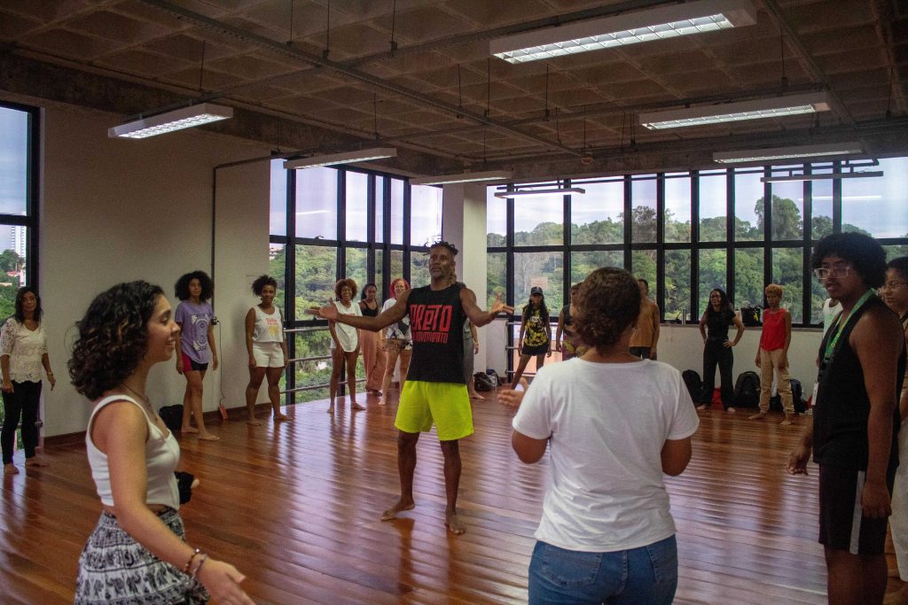 Selva Carvalho, aluno do BI de Artes, por sua vez, falou sobre a experiência de participar de uma oficina de teatro, ressaltando que “não é só para você fazer teatro, não é só para você fazer cinema, é para viver, é para dar entrevistas, é para falar com pessoas”. Para Selva, o Ayê tem o potencial de promover um ambiente inclusivo, no qual até pessoas sem formação acadêmica em teatro possam se experimentar.
