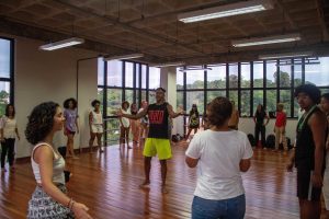 O Espaço Ayê, uma iniciativa do Setor de Manufatura do Instituto de Humanidades, Artes e Ciências da UFBA (IHAC), foi inaugurado na última quarta-feira (15) com a oficina “Teatrando”, conduzida pelo renomado ator Leno Sacramento, membro do Bando de Teatro Olodum e ator do filme “Ó Paí, Ó”. A oficina, que teve lotação total com as 25 vagas oferecidas, marcou o primeiro passo para a criação de um novo ambiente acadêmico e cultural no IHAC, projetado para acolher e promover a interação entre estudantes de diferentes áreas.