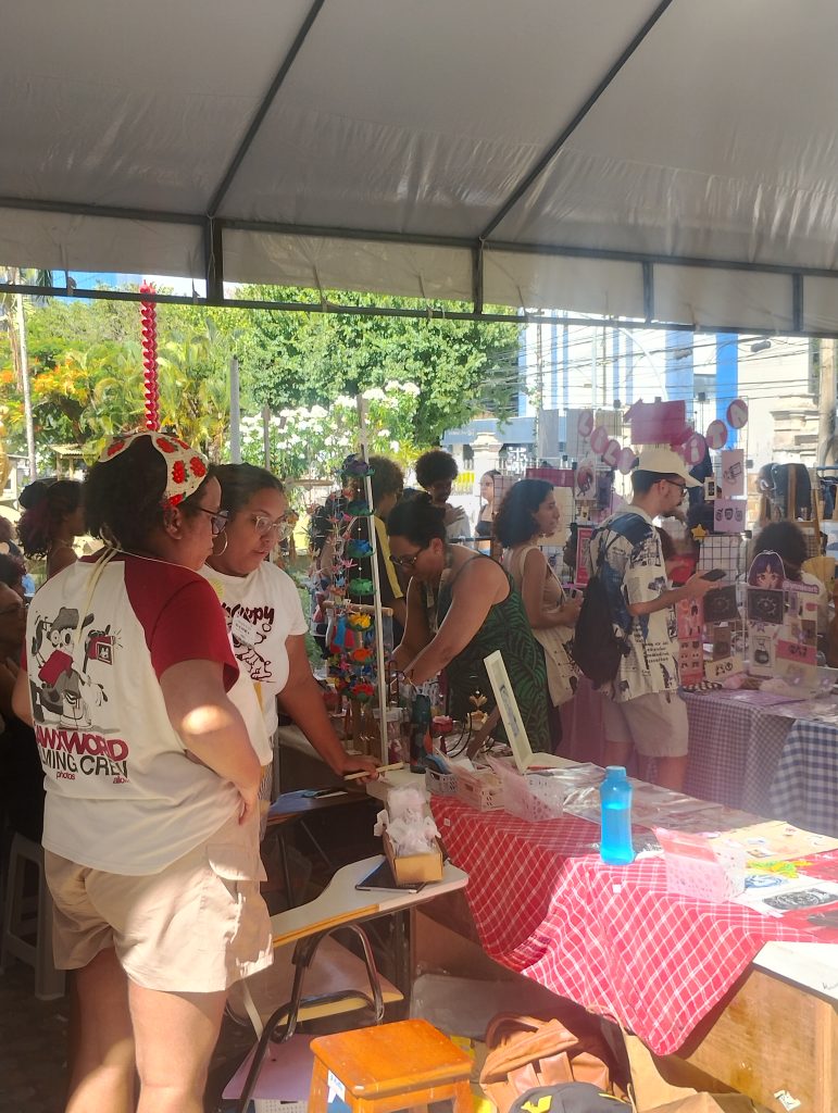 Encabeçada pelo Centro Acadêmico Unificado da Escola de Belas Artes (CAUEBA), a iniciativa reúne artesãos, tatuadores e outros artistas interessados em expor suas obras, sendo necessário apenas estar matriculado em qualquer curso da UFBA ou ser egresso da EBA. “A gente busca alcançar esse público de fora da faculdade, até por isso decidimos expor aqui [no pátio externo], pensando que mais pessoas podem ver e se interessar”, afirma Maria Fernanda Freitas, estudante de Licenciatura em Desenho Plástico e produtora executiva do evento.