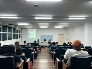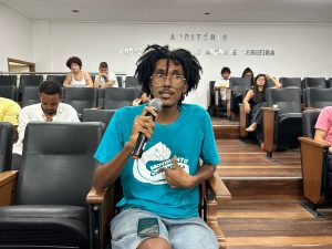 João Pedro, coordenador do CA, destacou a repressão da juventude negra pelo Estado nos espaços urbano e rural. Joélisson Oliveira, pesquisador do NERA, reivindicou uma academia que pense o povo trabalhador, baixa renda e agrícola. Principais afetados pelo agronegócio. “Do oeste da Bahia até a capital Salvador, ele vem criando impacto ao meio-ambiente com desmatamento, uso de agrotóxico.” A comunidade UFBA tem ao menos 84 graduandos quilombolas e 59 indígenas, segundo edital de vagas reservadas em 2025.